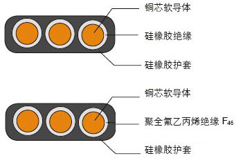 2、電纜允許工作溫度范圍:硅橡膠-60℃~+180℃;氟塑料-60℃~+200℃