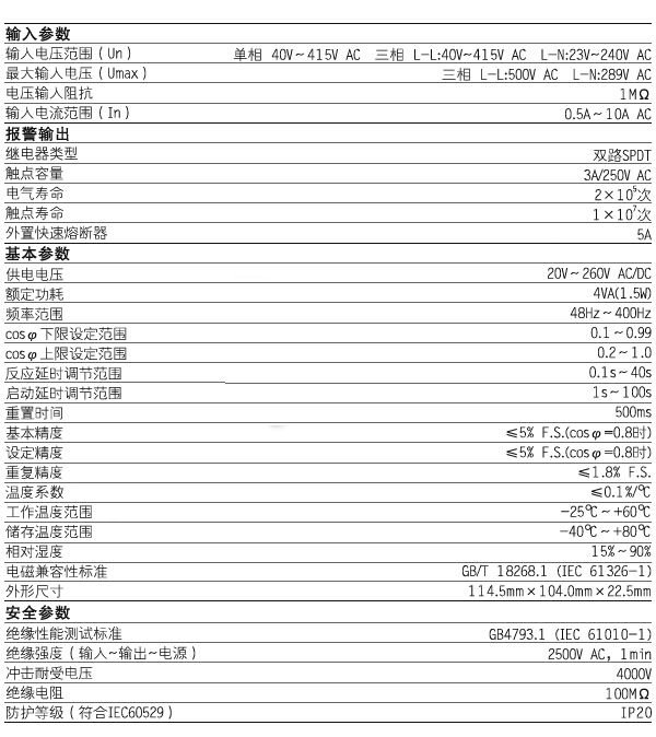 功率監(jiān)控繼電器 | ETM-PF-400 | 過載、小負(fù)載、窗口 | 單相 40~415V AC 三相 L-L:40~415V/L-N:23~240V AC 輸入電流 0.5A~10A AC | 20~260V AC/DC |
