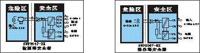 隔離式熱電偶安全柵 | SWP-8047-EX | 4~20mADC | 4~20mADC或1~5VDC | 它向兩線制變送器提供配電電源,并將變送器的信號(hào)隔離轉(zhuǎn)換為輸出,且具有防爆功能 |