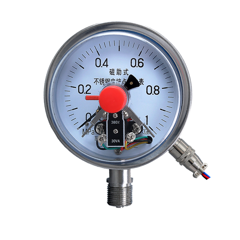 特種磁助電接點壓力表是根據(jù)使用工況的不同要求,在普通型磁助電接點壓力表的基礎(chǔ)上,研制了具有耐震、耐腐、氨用、耐蝕耐震及帶有隔膜隔離器等功能的多種類型的產(chǎn)品。廣泛應(yīng)用于石油、化工、電站、冶金等工業(yè)部門,在環(huán)境較為惡劣和有耐腐要求的場合中測量無爆炸危險的各種流體介質(zhì)的壓力。儀表經(jīng)與相應(yīng)的電氣器件配套使用,可達(dá)到對被測壓力系統(tǒng)實現(xiàn)自動控制和發(fā)信(報警)的目的。