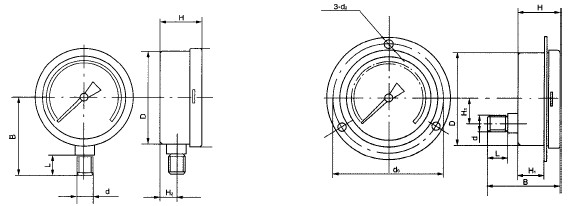 儀表直徑63.103.153表示直徑為60.100.150軸向帶邊
