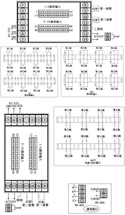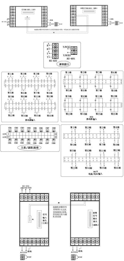 注2:統(tǒng)一控制/報(bào)警輸出:即儀表所有通道共用一個(gè)(或兩個(gè))報(bào)警輸出繼電器,或所有通道共用一組變送控制輸出。統(tǒng)