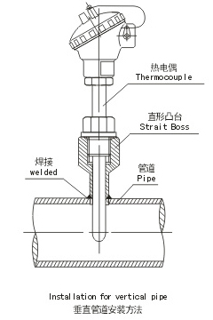 凸臺安裝示意圖(適用于熱電偶、熱電阻和雙金屬溫度計)
