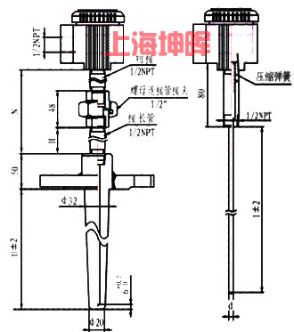 二、法蘭圓柱形溫度套管式熱電偶、熱電阻