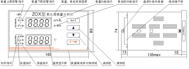 ZO型氧化鋯氧氣含量分析儀盤(pán)裝式顯示表外形結(jié)構(gòu)圖