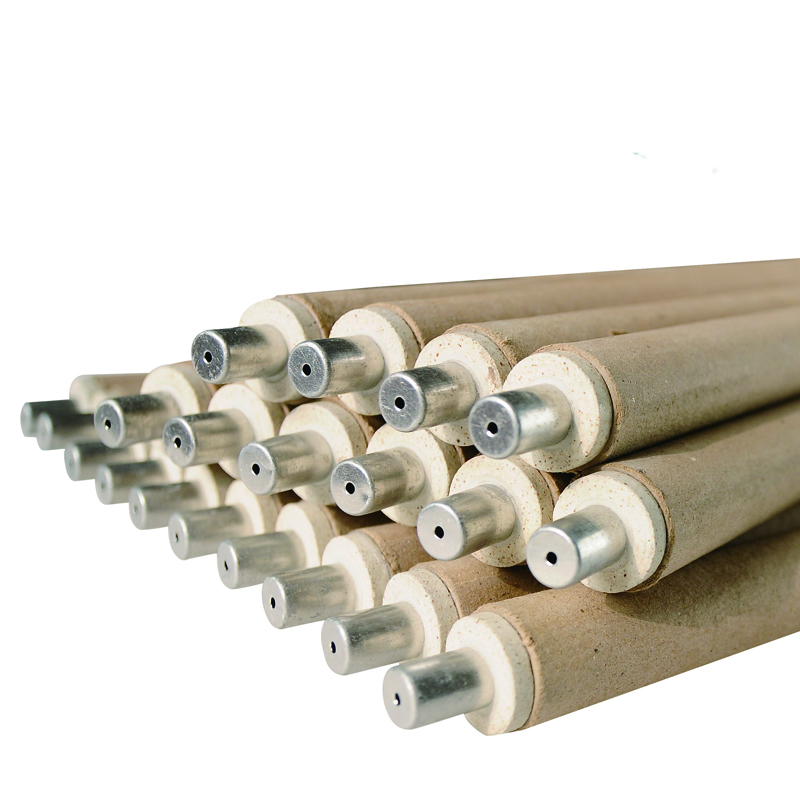 它主要由測溫偶頭與大紙管構(gòu)成,偶頭主要有正負極偶絲焊接在補償導(dǎo)線上,補償導(dǎo)線穿嵌在支架上,支架外套有小紙管,偶絲以石英管支撐和保護,石英管外裝有防
