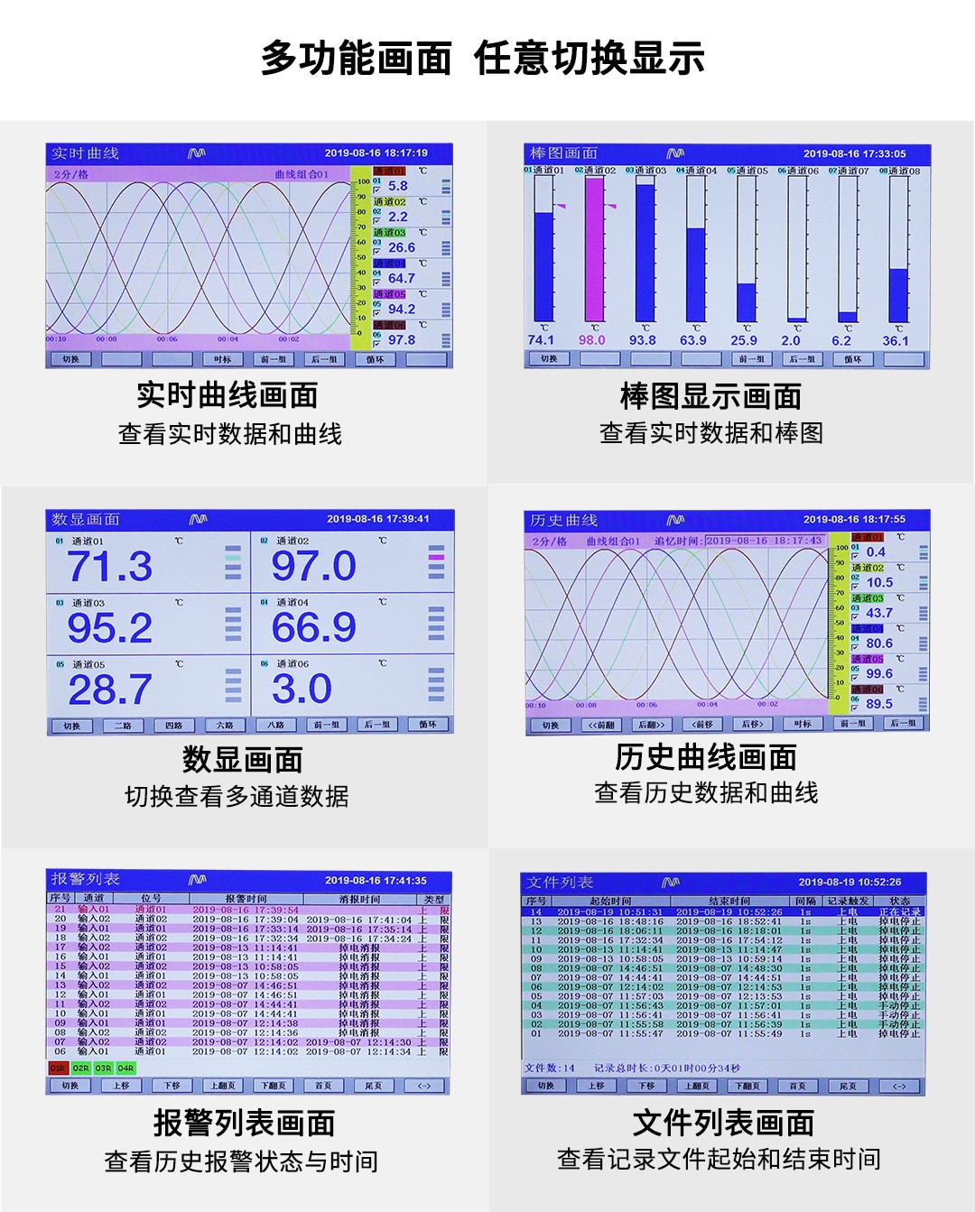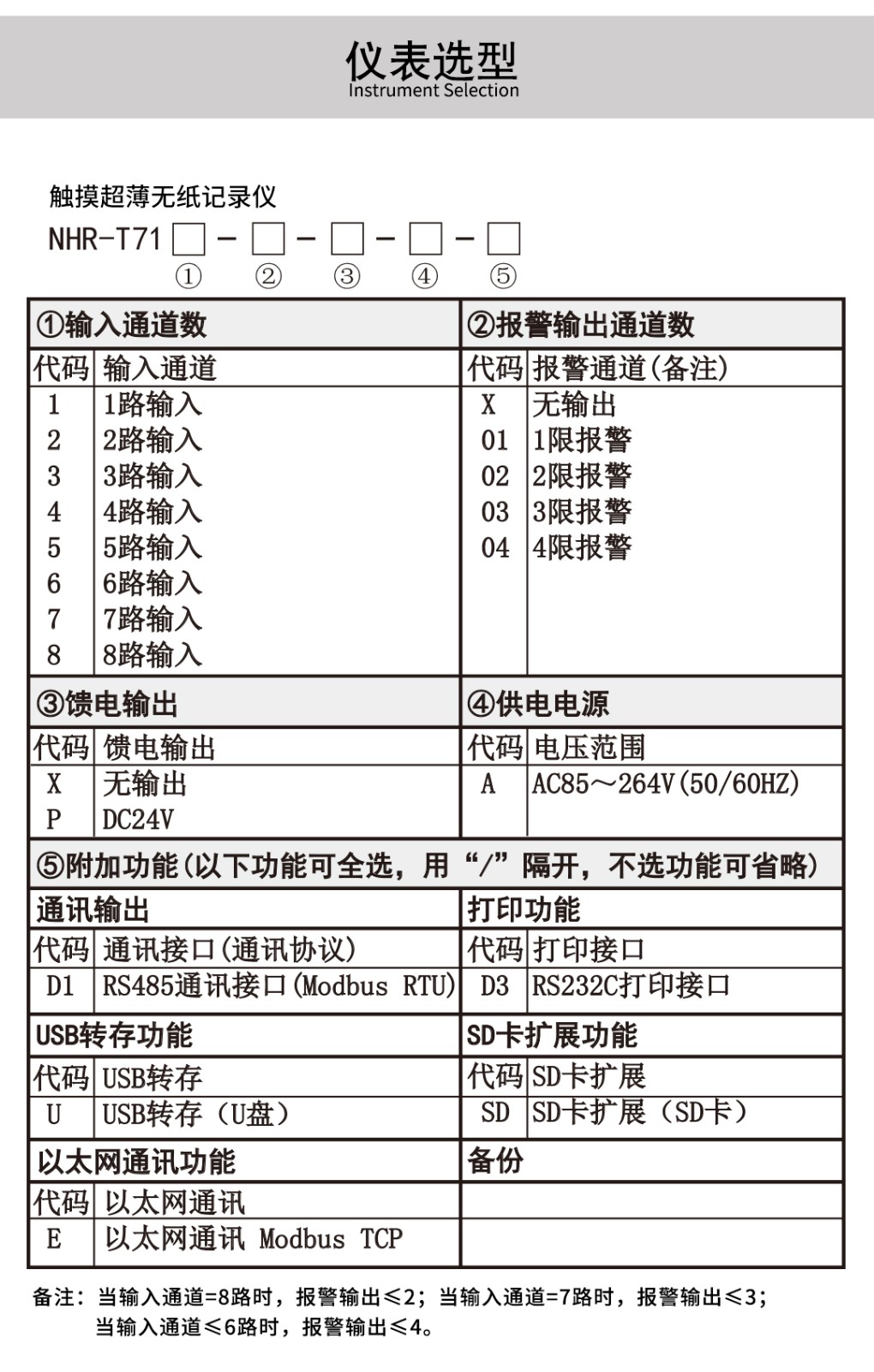 NHR-T710系列觸摸超薄無(wú)紙記錄儀采用新型大規(guī)模集成電路,對(duì)輸入、輸出、電源、信號(hào)采取可靠保護(hù)和強(qiáng)抗干擾設(shè)計(jì)。8路萬(wàn)能信號(hào)輸入(可組態(tài)選擇輸入:標(biāo)準(zhǔn)電壓、標(biāo)準(zhǔn)電流、熱電偶、熱電阻、頻率、毫伏等)??蓭?路報(bào)警輸出,1個(gè)饋電輸出,RS485通訊接口,以太網(wǎng)接口,微型打印機(jī)接口和USB接口,SD卡插座。